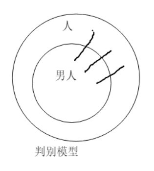 这两个句子都是“所有X都是Y”,属于同一个类型的东西,怎么会既是判别模型又是联结模型呢?