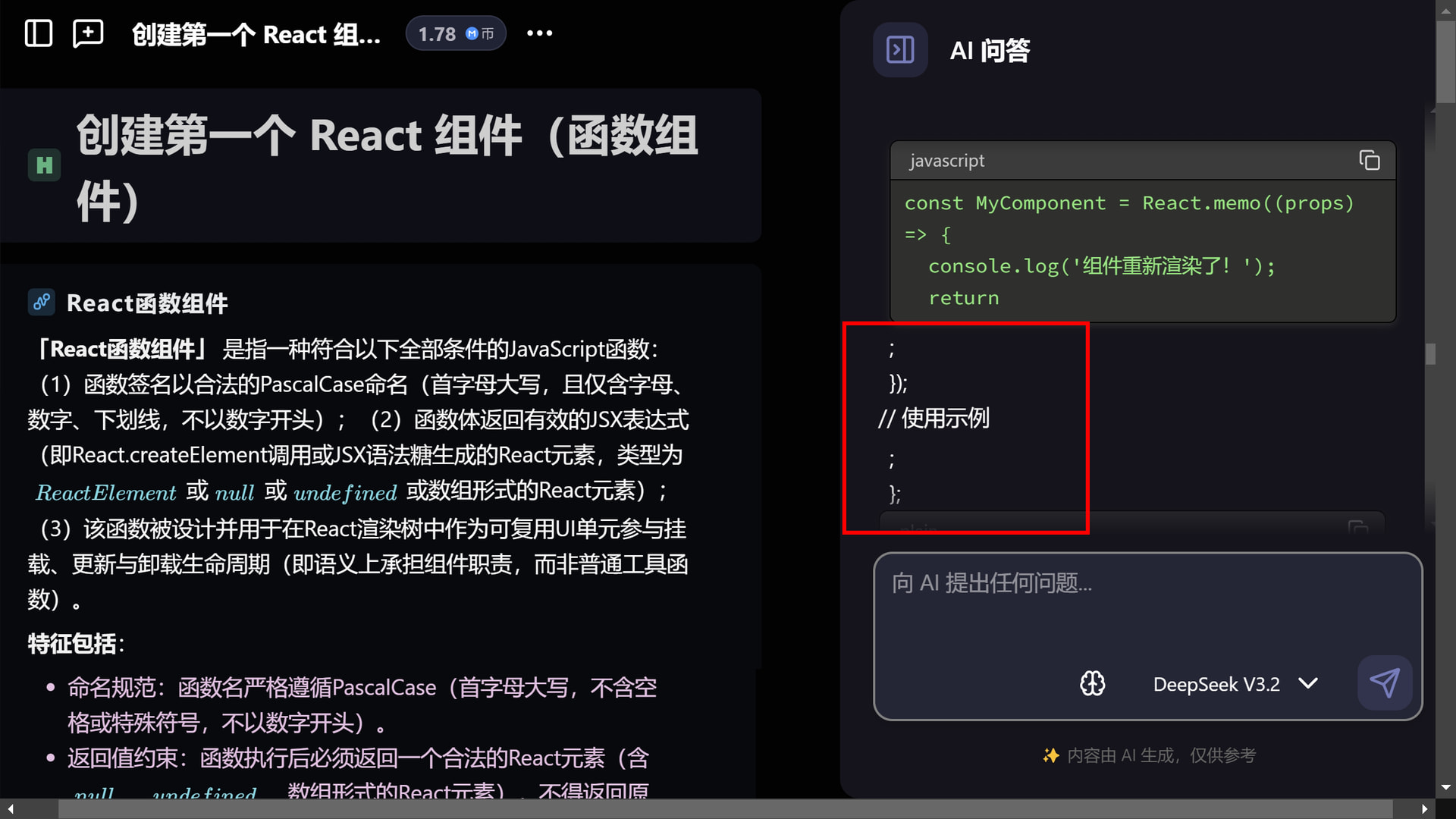 对于AI生成的内容的代码块或符号类似的内容部分,不知是否是网页附加符号,导致内容没有正确被包裹。比如``反引的内容“”字符串,多行代码,经常泄露到符号外面,情况比较常见。